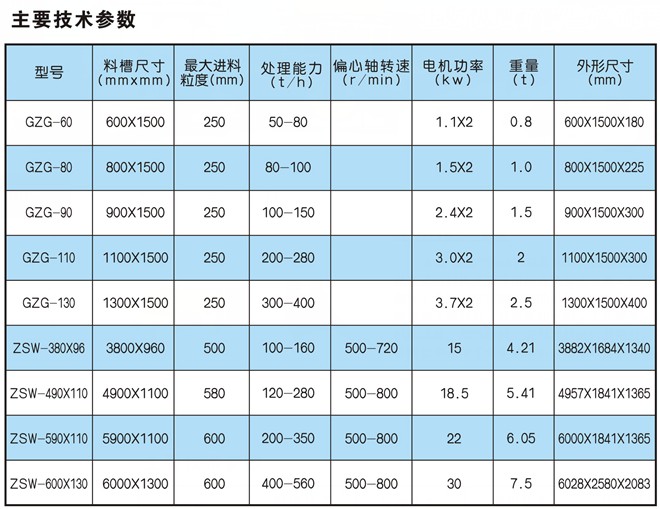 本公司生產(chǎn)的給料機(jī)系列分為激振式給料機(jī)與直線式給料機(jī)兩種。激振式給料機(jī)系列采用兩臺(tái)激振式電機(jī),用戶可自由調(diào)整給料機(jī)的振動(dòng)頻率,從而完全控制石料的給料速度,保證整條生產(chǎn)線的順暢運(yùn)行。直線振動(dòng)式給料機(jī),具有振動(dòng)平穩(wěn),工作穩(wěn)定,壽命長(zhǎng)等特點(diǎn)。可為碎石機(jī)械連續(xù)、均勻給料,并對(duì)物料進(jìn)行粗篩分。廣泛應(yīng)用于選礦、建材、硅酸鹽和化學(xué)工作中的碎石、篩分聯(lián)合設(shè)備中。